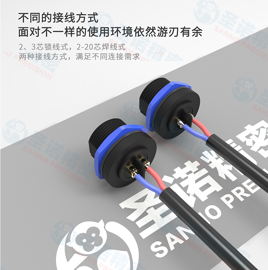 产品系列 产品芯数 安装类型 电流 锁线方式 ST-M25 2芯 单孔外锁螺母 30A 螺丝锁线/焊接 -