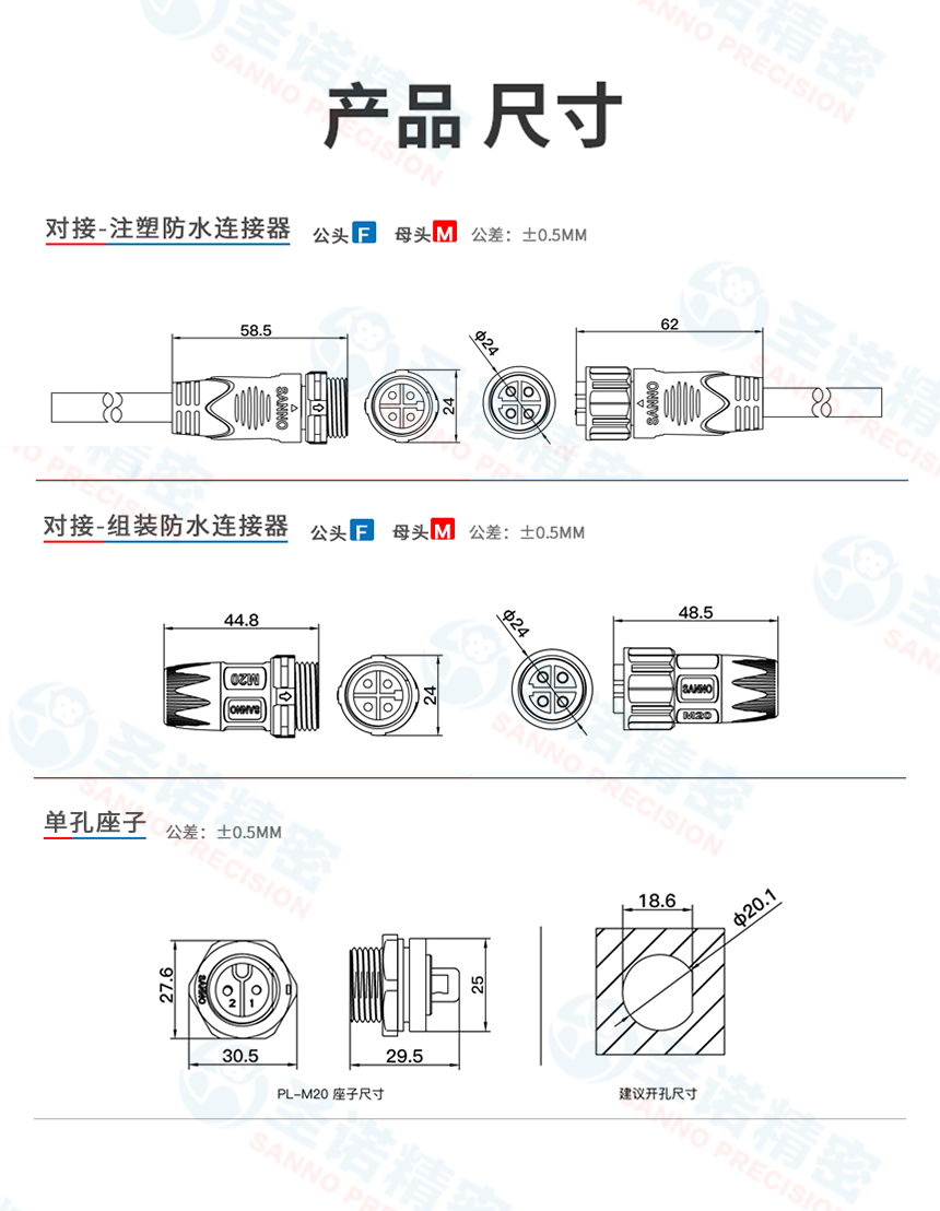 产品系列 产品尺寸 产品芯数 电流 防护等级 ST-M20 M20 4芯 20A IP67/IP68 -