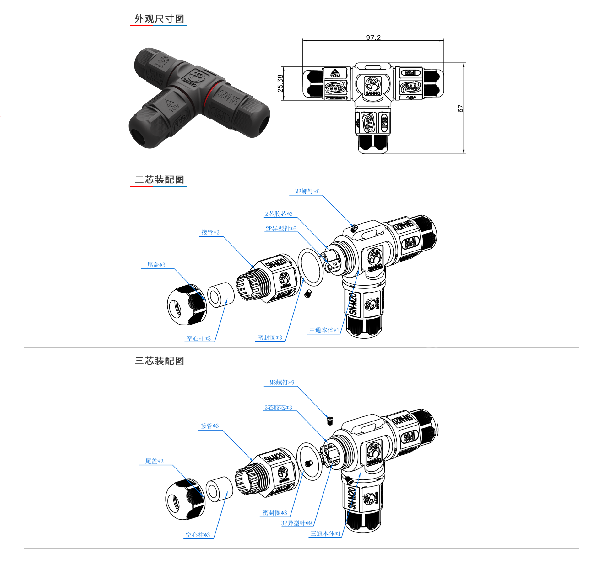 产品中心 组合式M20-三通-3P连接器