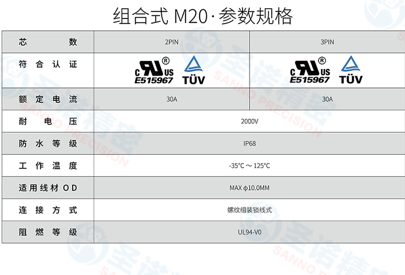 组合式M20 M20 3芯 30A IP67/IP68