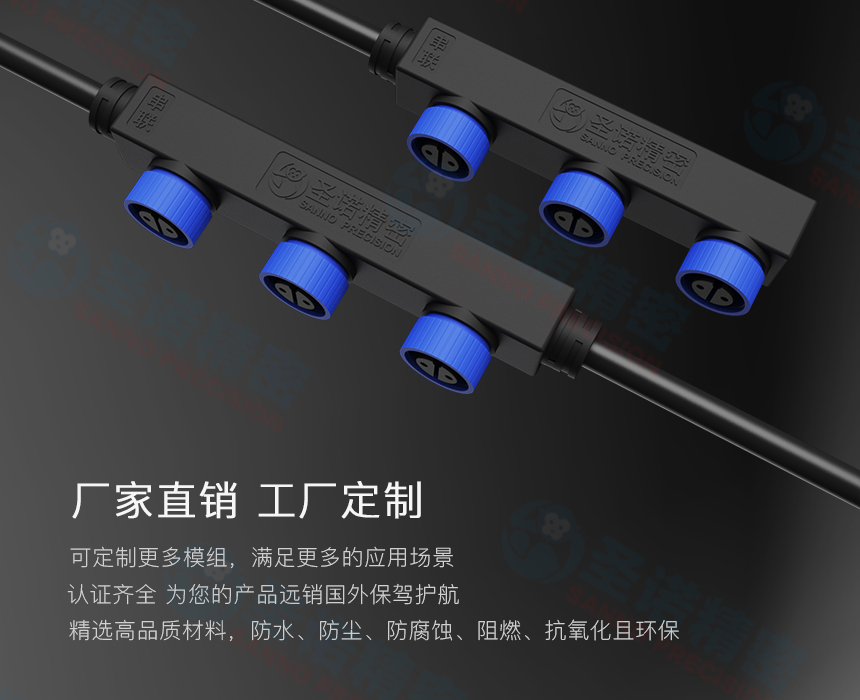 产品系列 芯数 电流 模数 防护等级 CSA-M15 2芯 10A 3模 IP67/IP68 -