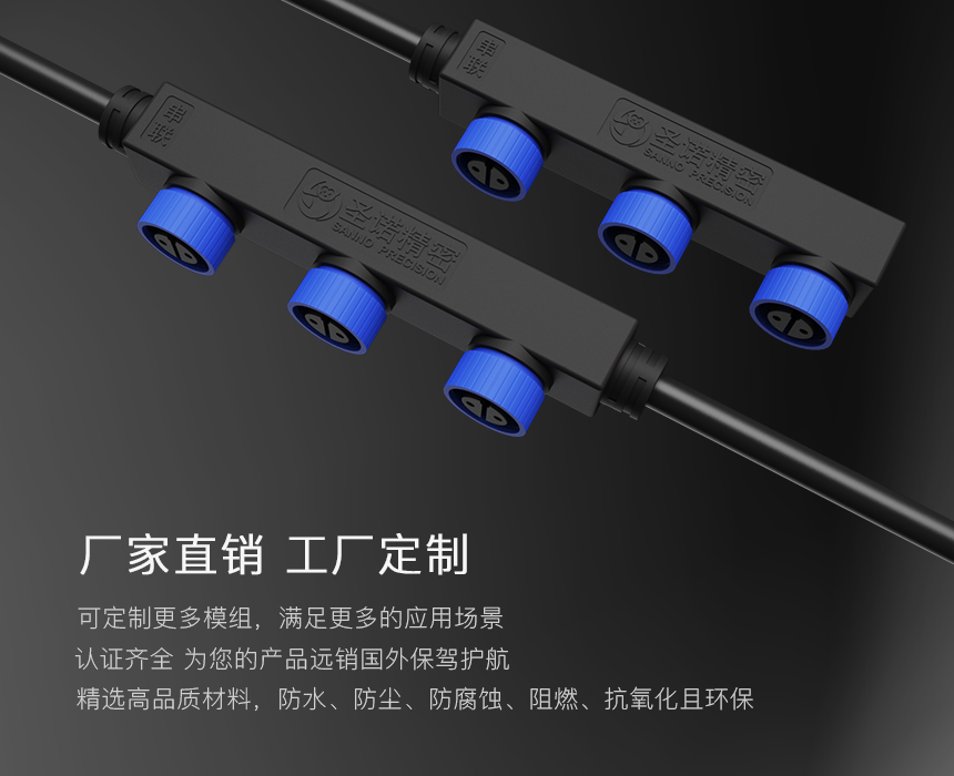 产品系列 芯数 电流 模数 防护等级 CSA-M15 3芯 10A 2模 IP67/IP68 -