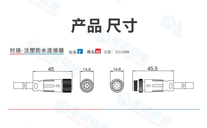 产品系列 产品尺寸 产品芯数 电流 防护等级 LP-M12 M12 8芯 5A IP67/IP68 -